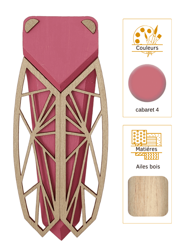 Cigale en bois massif peinte à la main et ailes en bois de tilleul