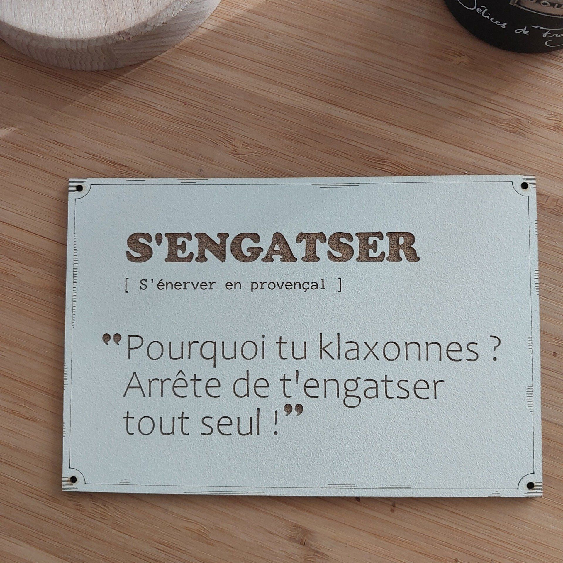 Comment ne pas se mettre automatiquement à sourire juste en lisant ces cartes de la série "Mots du Sud". Nous avons sélectionné quelques uns des mots provençaux encore très utilisés pour la plus part et d'autres plus anciens mais qui nous replongent aussitôt en enfance lors de vacances en Provence chez nos grand-parents.