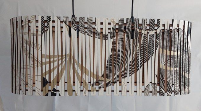 Trio d'abat-jour artisanaux et designs 100 % bois . Dimensions : 15 cm de diamètre